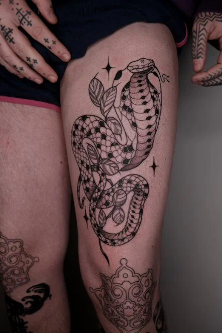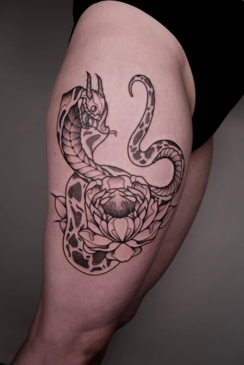A small selection of my recent tattoo work. My tattoos are often inspired by Japanese artists and culture, with the use of fine line, blackwork, dot work and traditional styles.